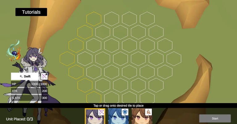 Once player completed the tutorial, they will be asked to place the units that they have in their formation setup on the valid tile (showcased with yellow colored tile)